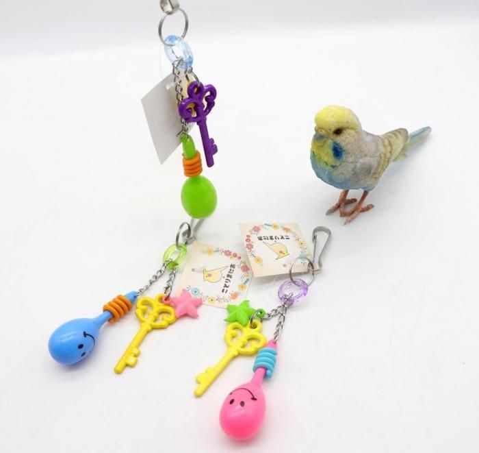 【ことりまにあ】のオリジナル!鳥さんが大好きなマラカスと、プラスチック製の鍵の引っ張りっこおもちゃです!
